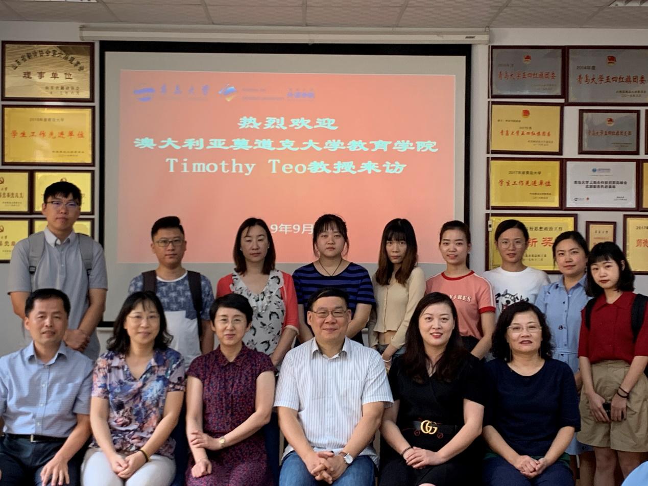 2019年9月6日,澳大利亚莫道克大学教育学院Timothy Teo教授应邀前来学院与老师、同学们探讨研究学术问题及论文发表事宜。此次座谈会在博文楼312会议室举行,黄芳博士担任主持,黑料