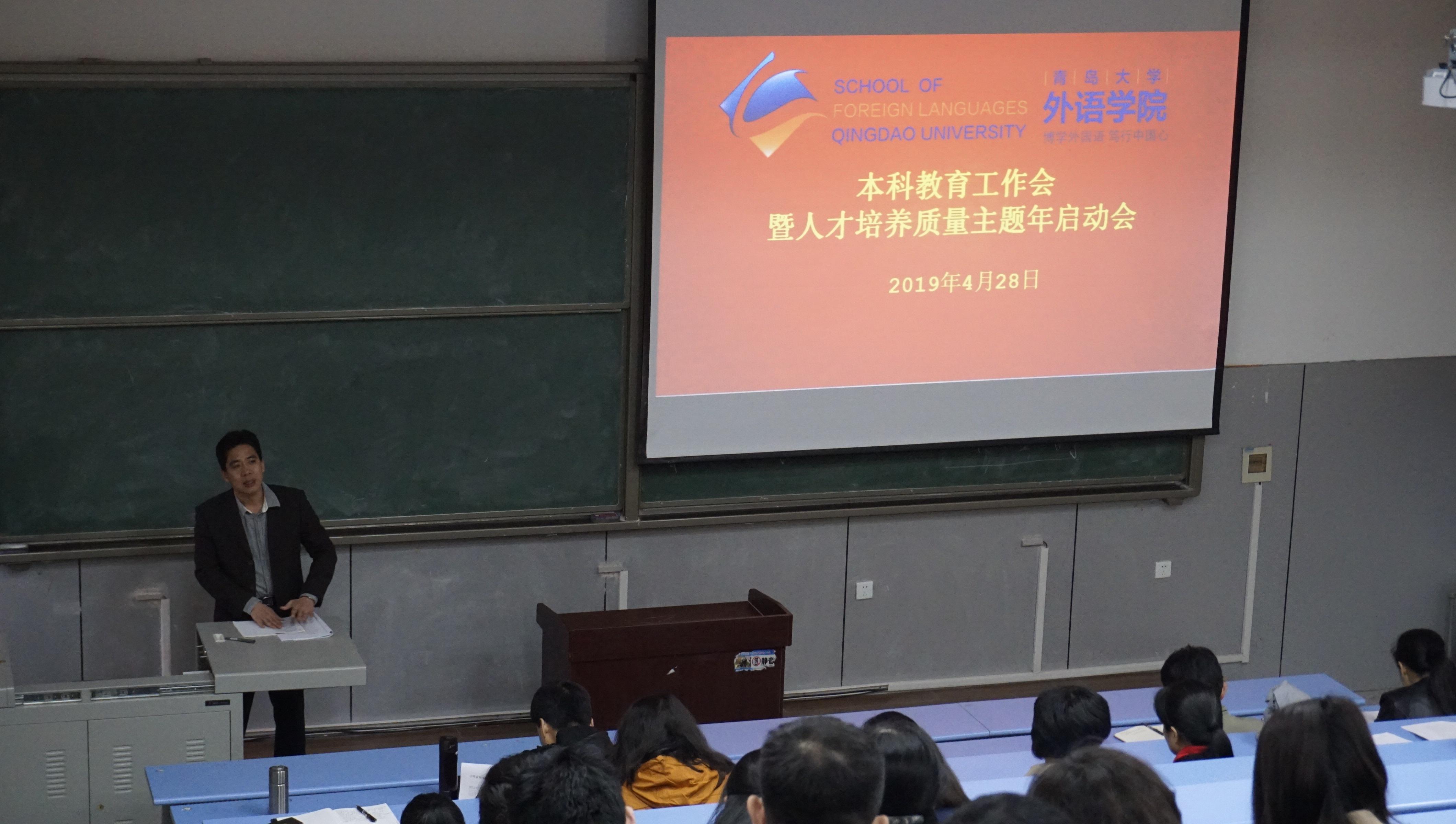 在博文楼217教室召开2019年本科教育工作大会暨人才培养质量主题年启动会。校党委常委、副校长孔伟金出席启动会并作专题报告。院党委书记王传永主持会议。