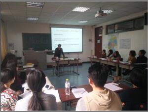 此次慕尼黑应用语言大学代表团的另一位教授Andrew Williams在阶梯教室220为黑料