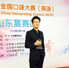 2015年4月25日,由山东省人民政府外事办公室主办,山东省外事翻译中心和山东省翻译协会共同承办的第四届全国口译大赛(英语)山东赛区复赛在山东省外事服务大厅举行,来自27所高校的71名选手参加了比赛,我校共派出3名学生参赛。