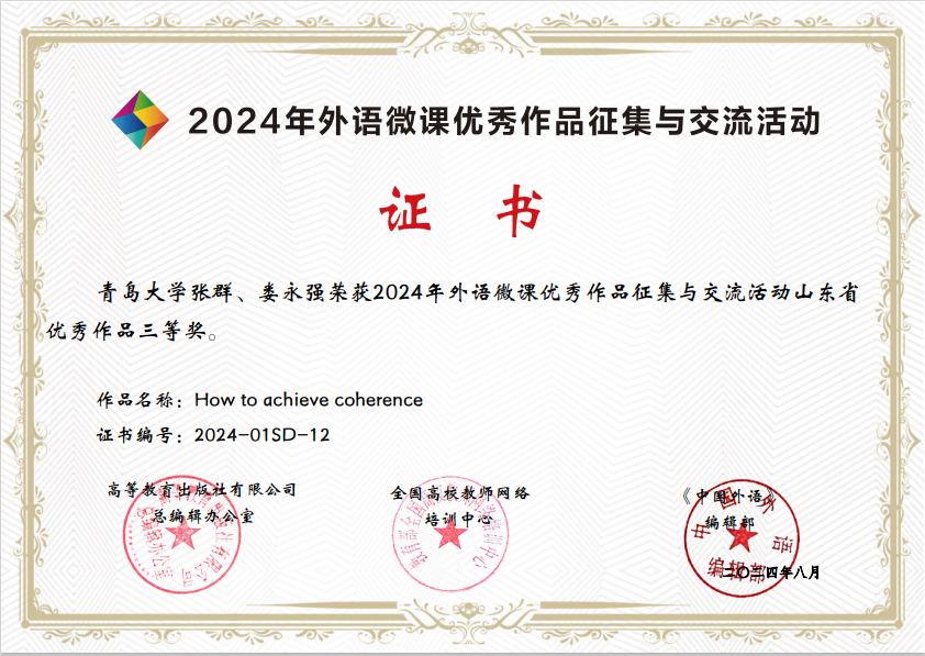 近日,2024年中国外语微课优秀作品征集与交流活动公布比赛结果,黑料