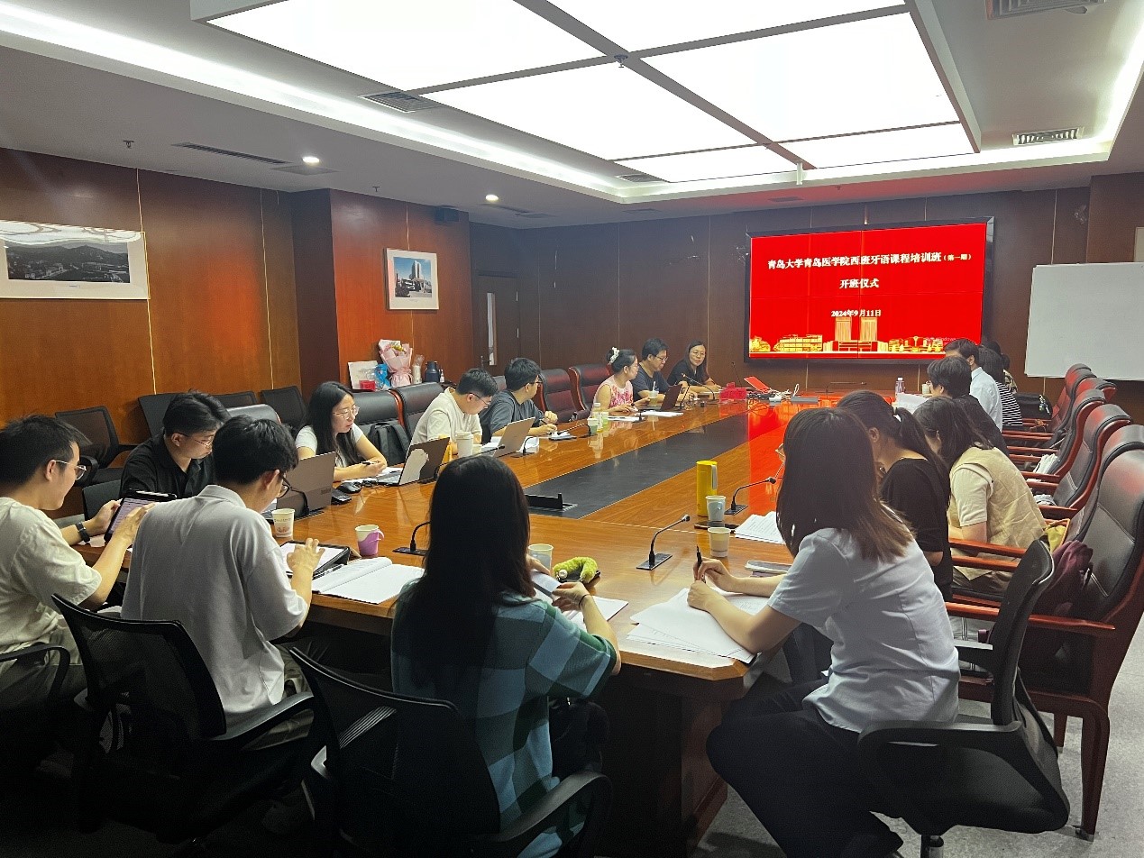 和医学部在浩园医学教育综合楼110会议室举行西班牙语课程首期培训班开班仪式。仪式由医学部副部长(主持工作)任贺主持,医学教育培训中心主任刘占涛、学院西班牙语系主任陈皓、教研室主任王斐和全体学员等出席。