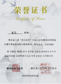 本次比赛由韩国沃川文化院、浙江省对外人民友好协会主办,由杭州师范大学外国语学院承办,来自江苏省、浙江省、上海市、安徽省、山东省高校朝鲜语专业在校百余名本科生参加了比赛,经过线上初赛筛选,黑料