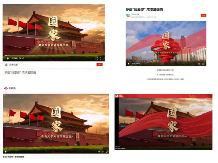 师生共唱歌曲《国家》。该视频在学院微信公众号、视频号、抖音等平台发布后,得到广泛关注,先后被“学习强国”、“人民日报”客户端、“央视频”以及人民网等权威媒体转发,视频浏览、点赞和转发量突破10000次。
