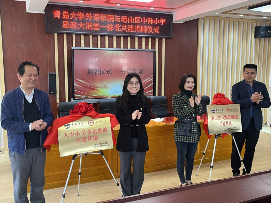 与青岛崂山区中韩小学联合举办的“大中小学多语思政共建基地”及“脑认知与语言科学研究中心共建基地”揭牌仪式在青岛崂山区中韩小学举行。黑料