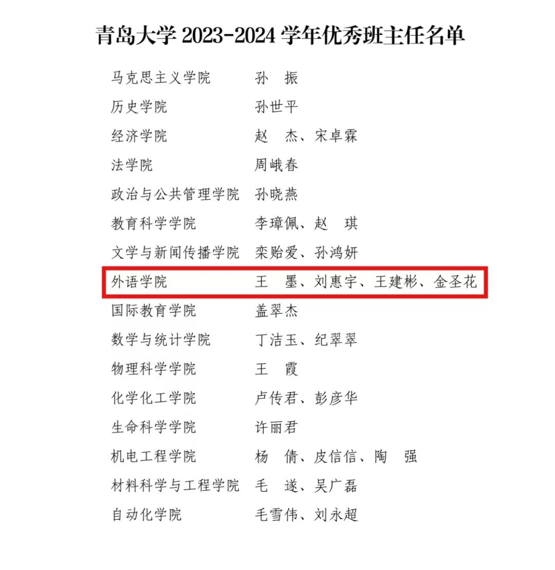 2023-2024学年优秀班主任荣誉称号