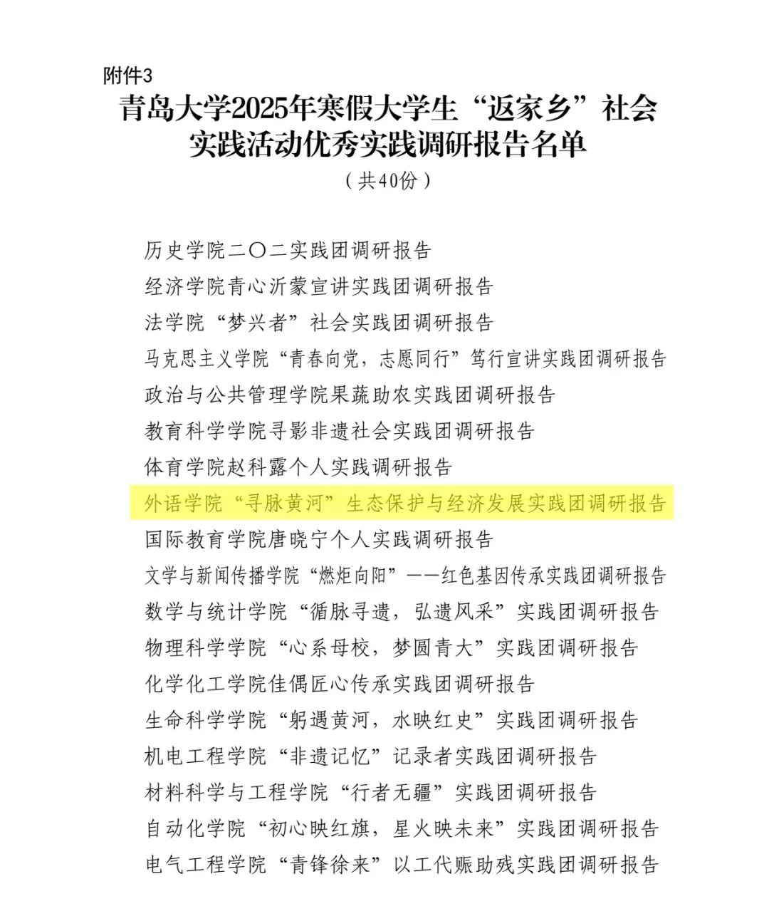 2025年寒假大学生“返家乡”社会实践活动优秀实践团队荣誉称号