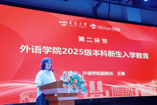 教师代表马一凡结合实例,指出具备情感交流能力与跨文化沟通能力的外语人才有着不可替代的价值,进一步坚定了同学们加强专业学习的信念。同时,她提醒新生要夯实语言基本功、提升沟通合作能力、学会承担责任、合理规划职业方向,并对新生的未来规划和发展表达了最诚挚的祝福。