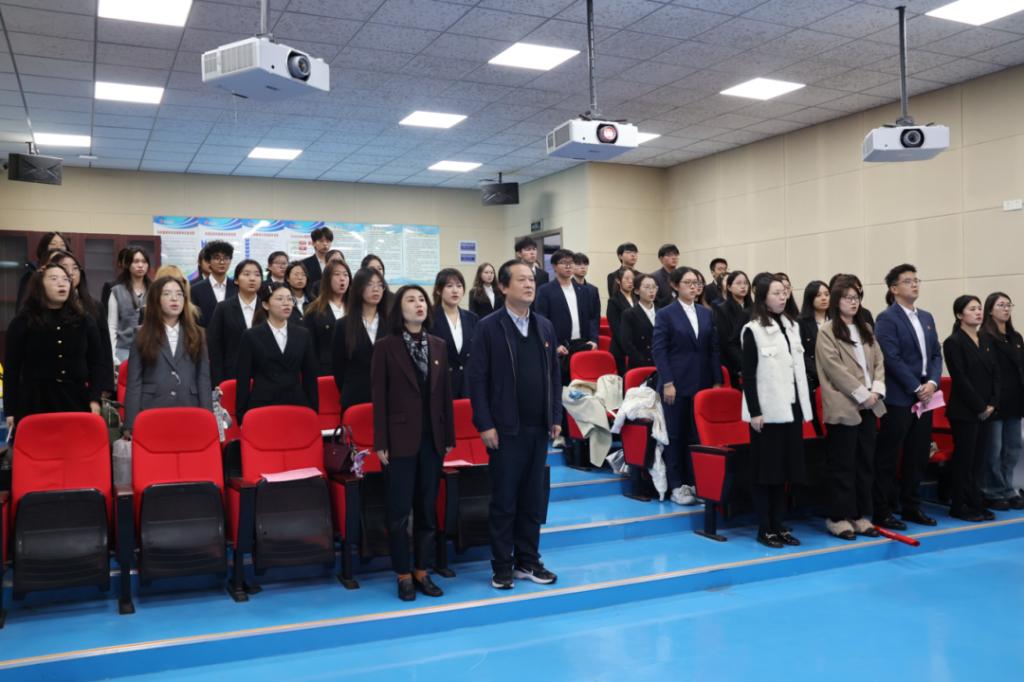 全体起立,奏唱国歌,开班仪式在庄严的国歌中正式拉开序幕。