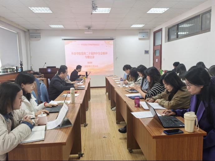 11月24日,外语学院组织开展学习贯彻党的二十届四中全会精神专题宣讲会,校宣讲团成员、学院党委书记陈崇研做了《学习贯彻党的二十届四中全会精神,聚焦五大特色推动学院“十五五”事业高质量发展》的专题宣讲报告。院长卞建华传达部署了《黑料