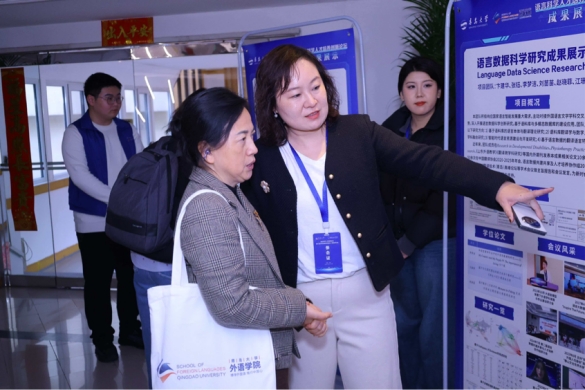 语言科学人才培养成果展,包含国家级一流本科专业建设点英语专业“学术英语语料库系列成果展示”、“语言数据科学研究成果展示”、“中国高中英语教材语言多维分析系列研究”、“国家级一流本科专业建设点德语专业建设科研成果展示”、“国家级一流本科专业建设点德语专业建设教学成果展示”、“《中国》翻译项目成果展示”和“生态翻译学视域下《金匮要略》方剂名西班牙语翻译研究”以及20项国家软件著作权及专利成果展示。成果展的创新设计和互动体验备受参会者关注,其前沿理念与实践结合的模式获得了广泛好评。