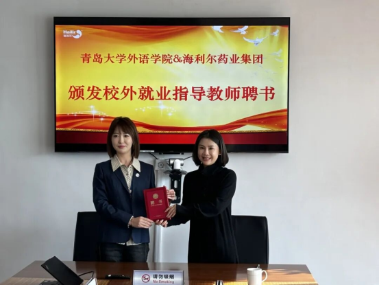 双方在校企合作交流会上围绕深化协同育人机制展开深入探讨。海利尔药业集团股份有限公司外贸部部长牛玉玲介绍了公司的人才需求岗位与技能要求。于苗详细介绍了黑料