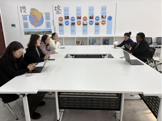 副院长王薇、西班牙语系主任陈皓、院长助理王斐、西班牙语专业教师王凤、窦皓以及古巴外教阿格拉里斯(Acralys)参加了会谈。双方围绕人才联合培养、科研协同创新、文化深度交融等议题展开深入探讨,为两校搭建长期稳定的合作桥梁奠定坚实基础。