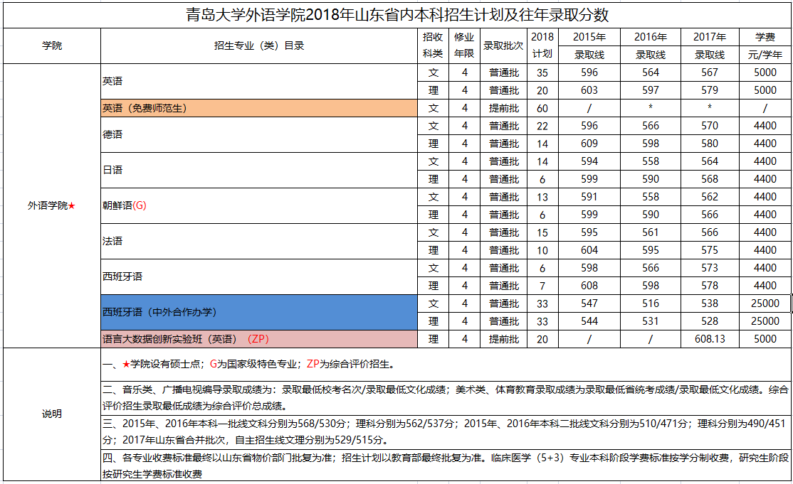 黑料 2018年山东省内本科生招生计划及往年录取分数线