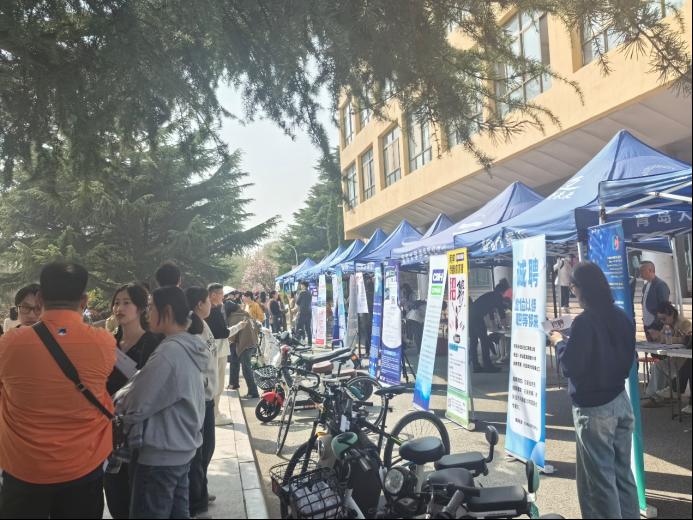 于4月18日下午在博文楼前广场举办“就”在周四 ,“语”你相约专场招聘会。本次招聘会涉及外贸、物流、翻译、教育、旅游、消防、信息技术、生产制造等多个领域,为学院毕业生提供多样化职位选择。